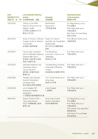 日期(日╱月╱年)本地學術會議╱活動 主辦機構 醫專的代表