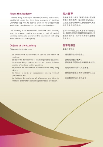 The Academy is an independent institution with statutory 醫專乃一所獨立的法定機構,有權組