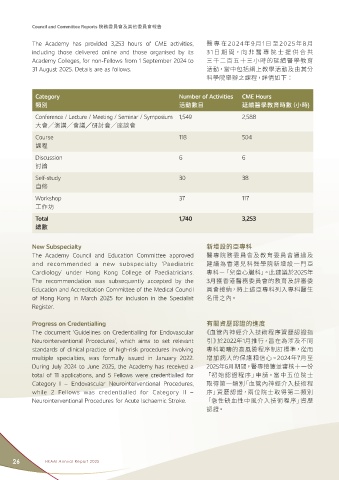 The Academy has provided 3,253 hours of CME activities, 醫專在 2 024 年 9 月 1 日至 2025 年 8 月