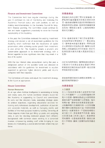 Academy’s financial status and cash position, as well as 況。委員會就醫專長遠的財務規劃向院