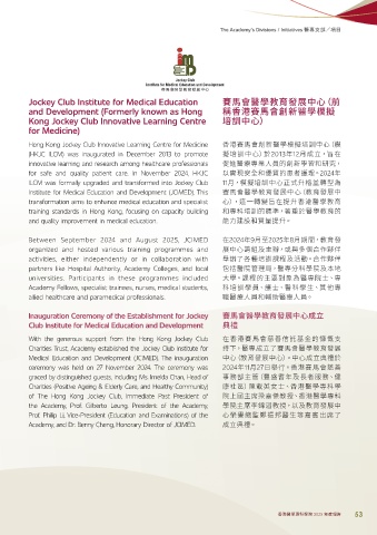 Charities Trust, Academy established the Jockey Club Institute for 持下,醫專成立了賽馬會醫學教育發展