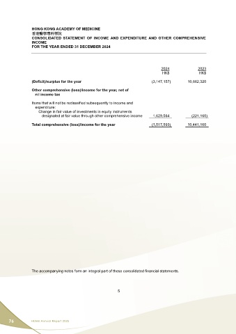 CONSOLIDATED STATEMENT OF INCOME AND EXPENDITURE AND OTHER COMPREHENSIVE CONSOLIDATED STATEMENT OF FINANCIAL POSITION
